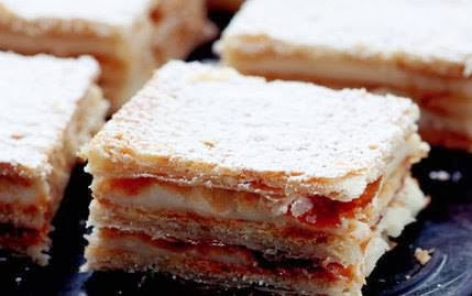 margarin ve vanilyayı ekleyip karıştırın. Fırından aldığınız hamuru testere bıçakla enlemesine üçe bölün. Üzerine kremayı sürün. Diğer milföy hamurunu üzerine kapatın. Tekrar testere bıçakla dilediğiniz